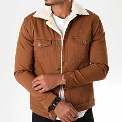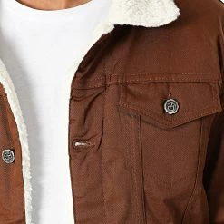 Veste Jean Super Slim Fit Col Mouton 5003 Marron Ecru de Black Needle