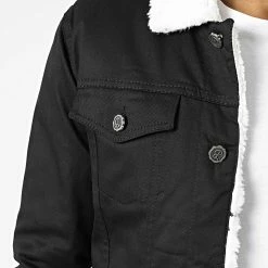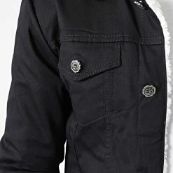 Veste Jean Super Slim Fit A Col Mouton 5005 Noir Blanc de Black Needle