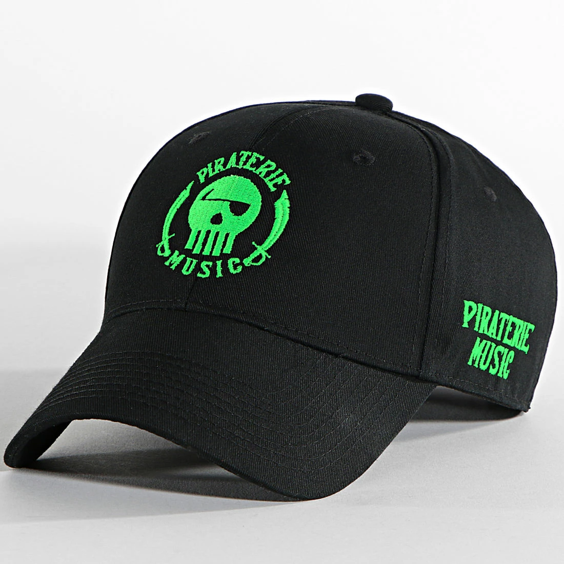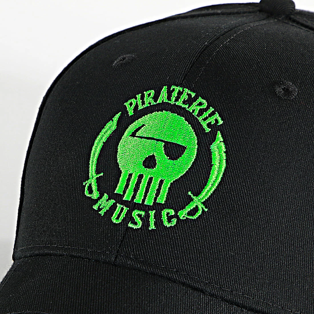Casquette Logo Noir Vert Fluo de Piraterie Music