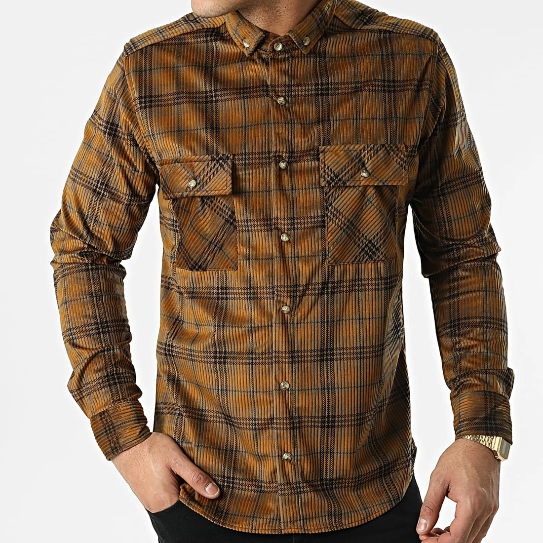 • Chemise manches longues en tissu doux avec motif carreaux