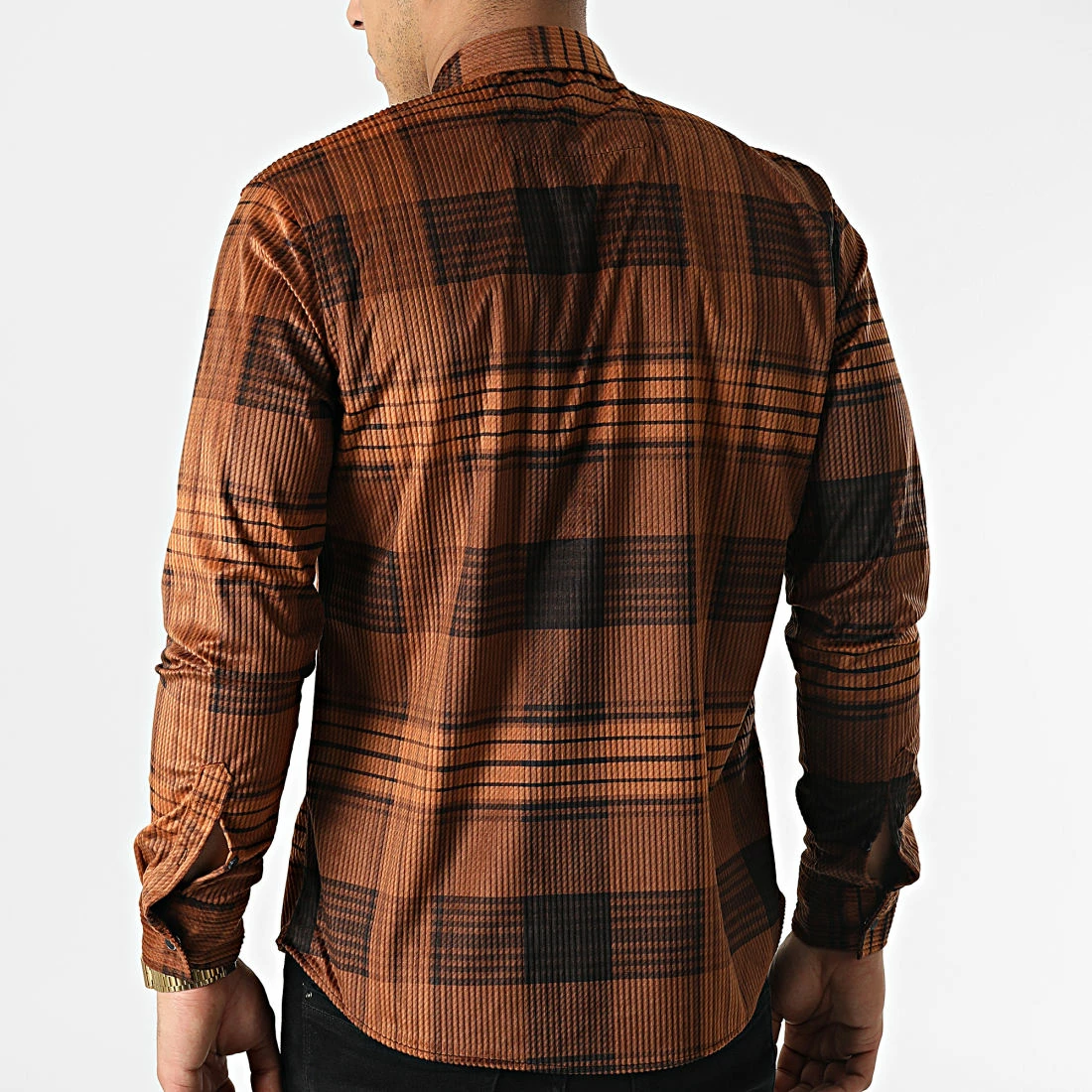 Chemise Manches Longues A Carreaux Y-3560-09 Marron Noir de Black Needle