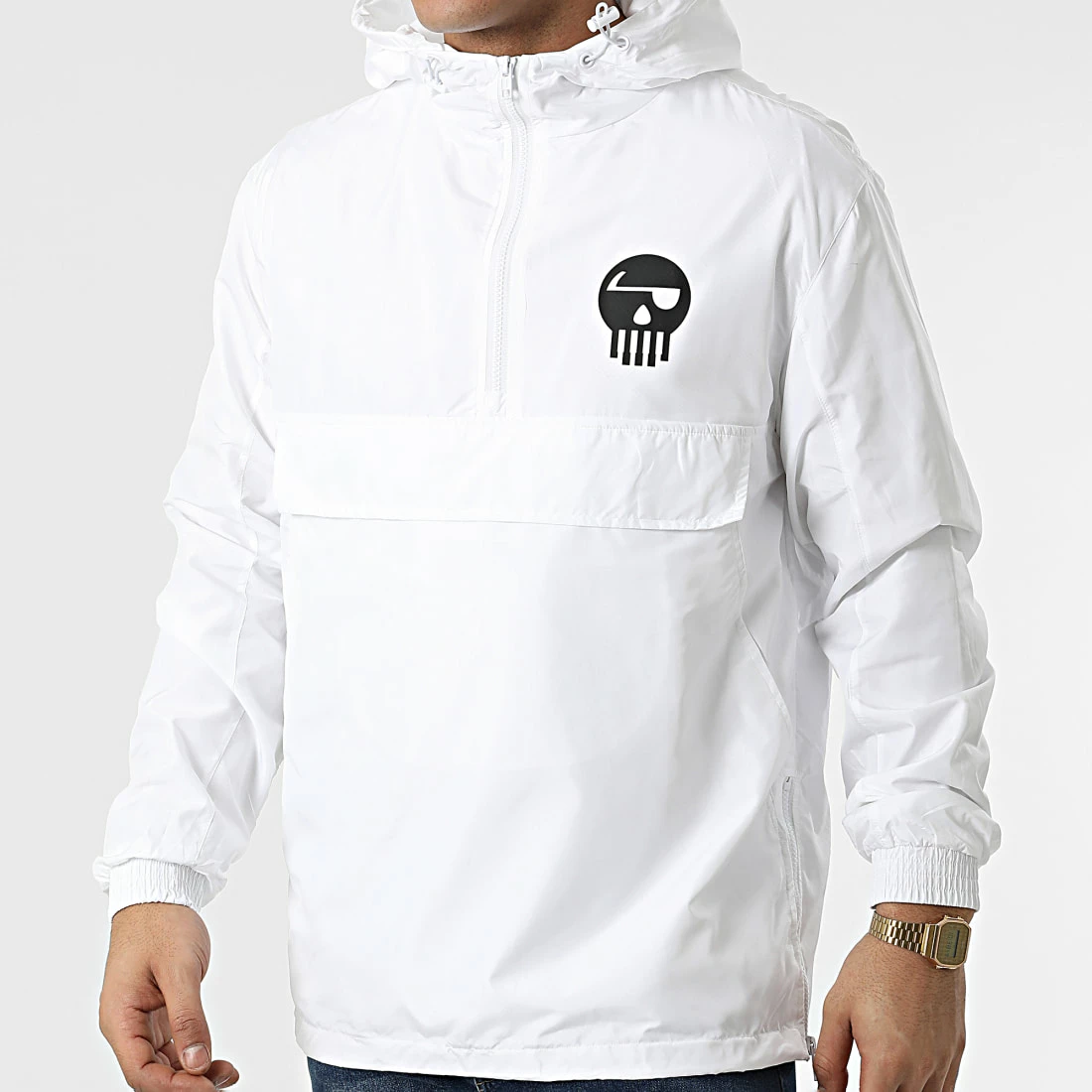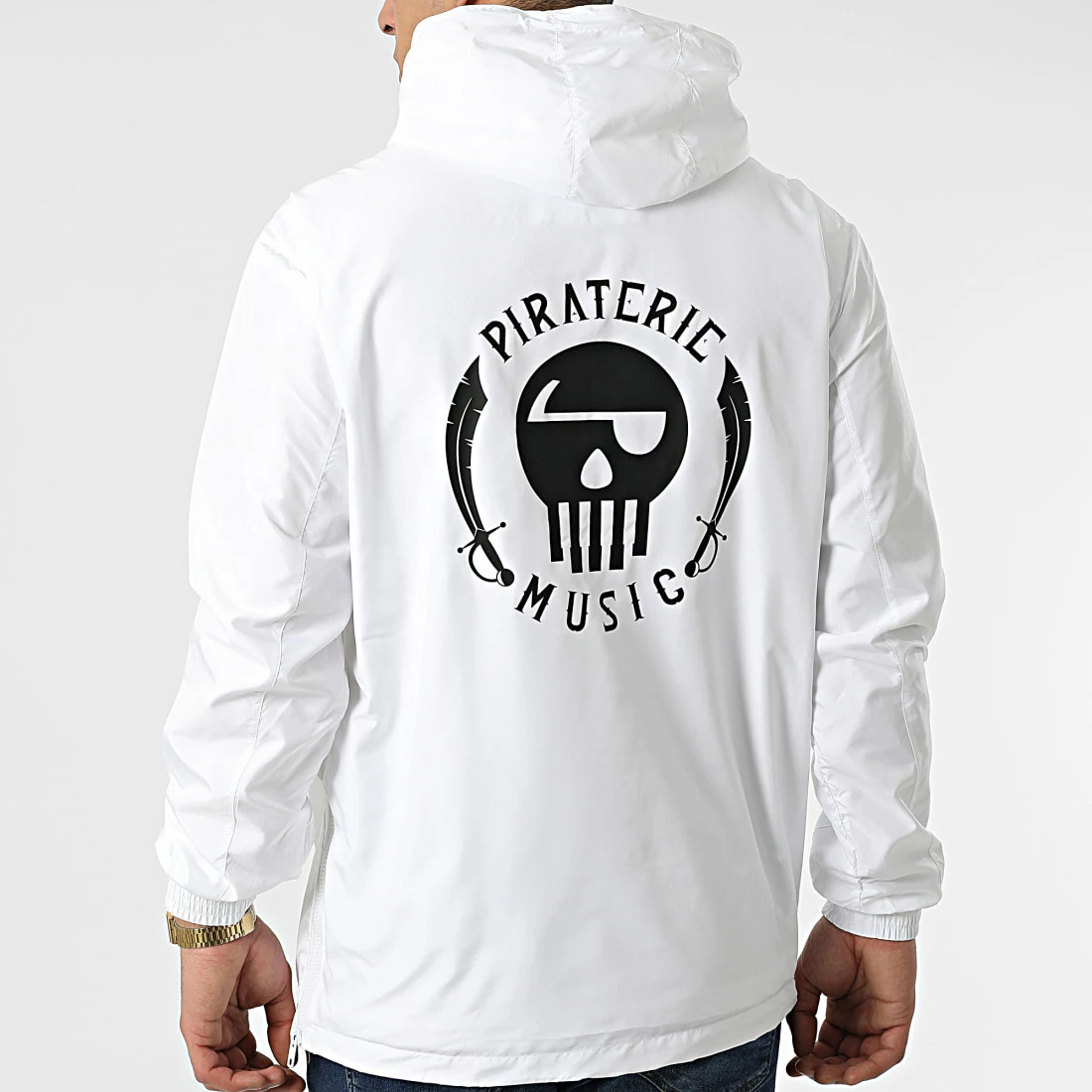 • Veste coupe-vent semi zippée à capuche imprimée visuel Piraterie Music sur l’avant et au dos