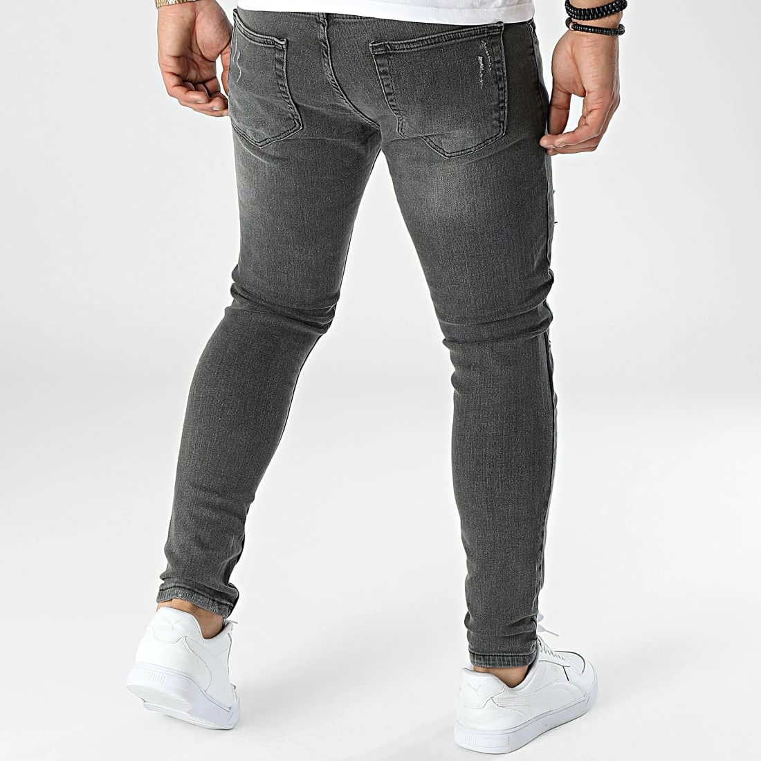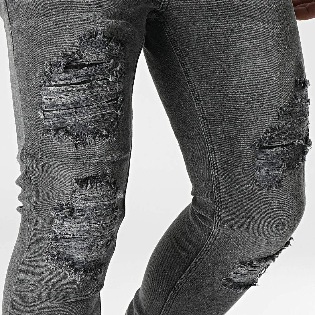 • Jean skinny tendance finition usée et délavée avec rapiéçages
