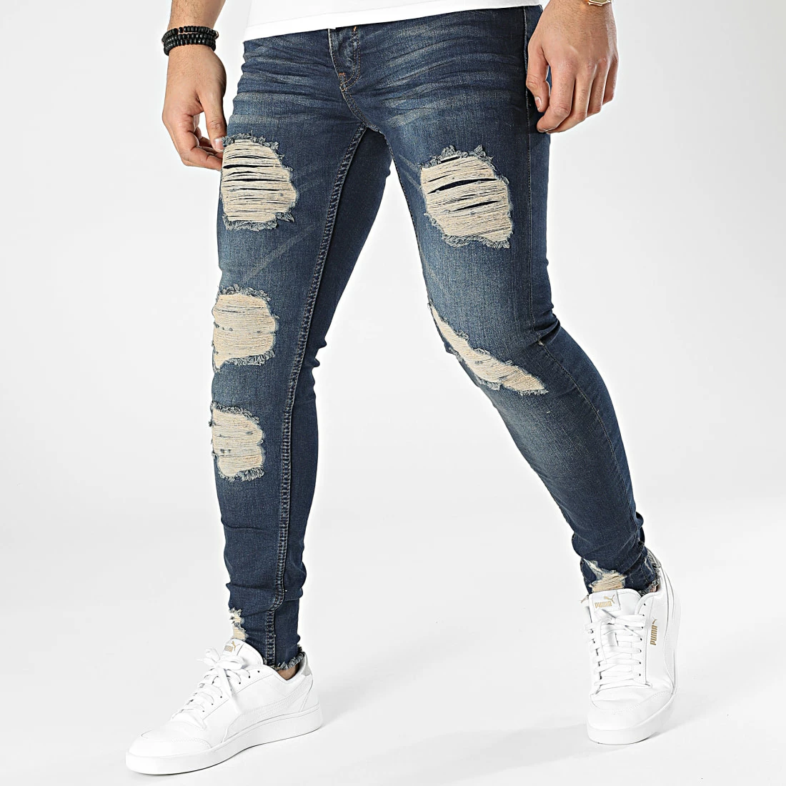• Finition usée, délavée, avec rapiéçages et avec trous apparents