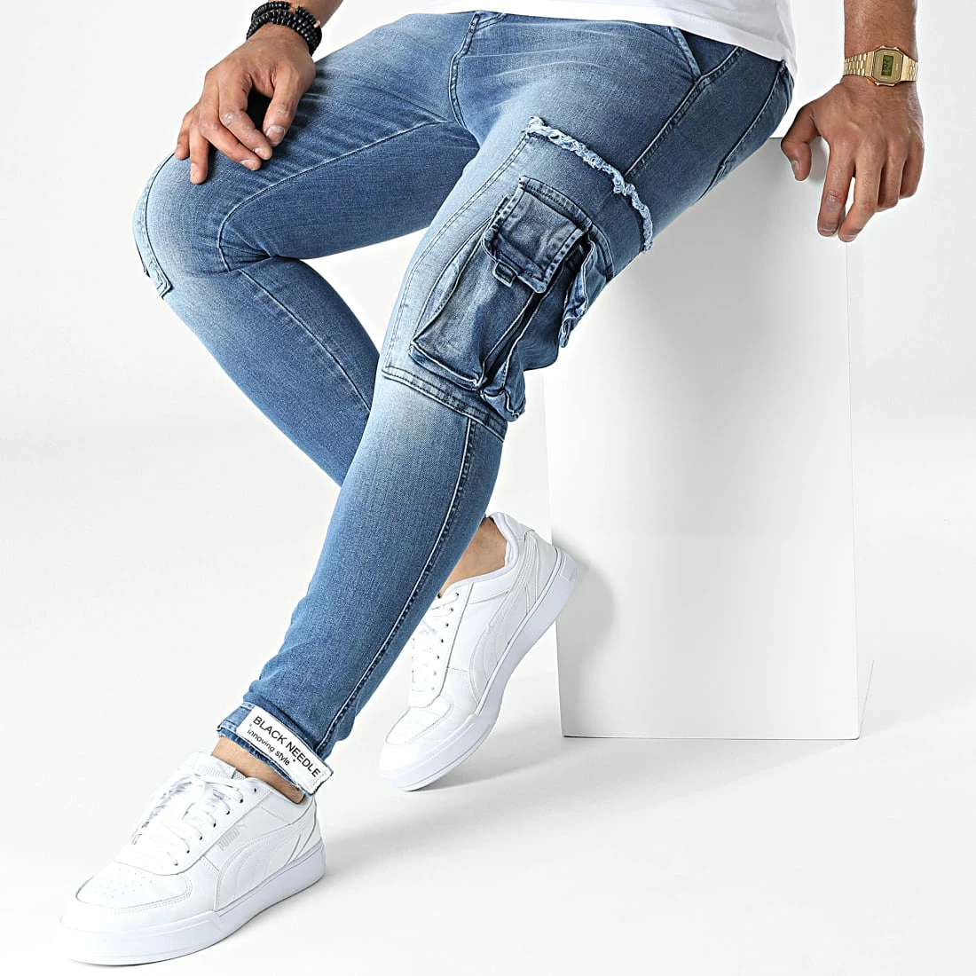 • Jean slim tendance avec poches cargo