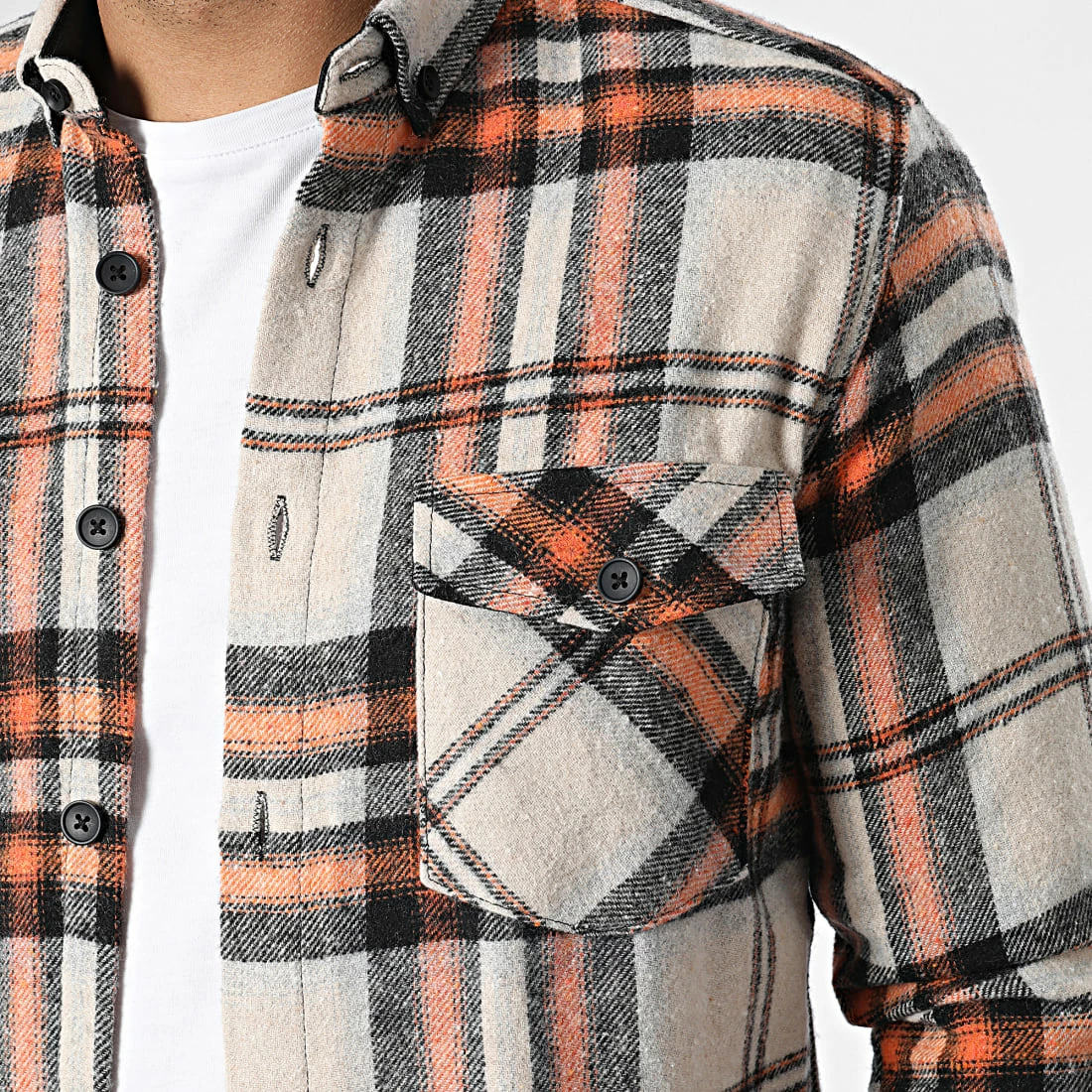 Surchemise Carreaux Y3688 Beige de Black Needle