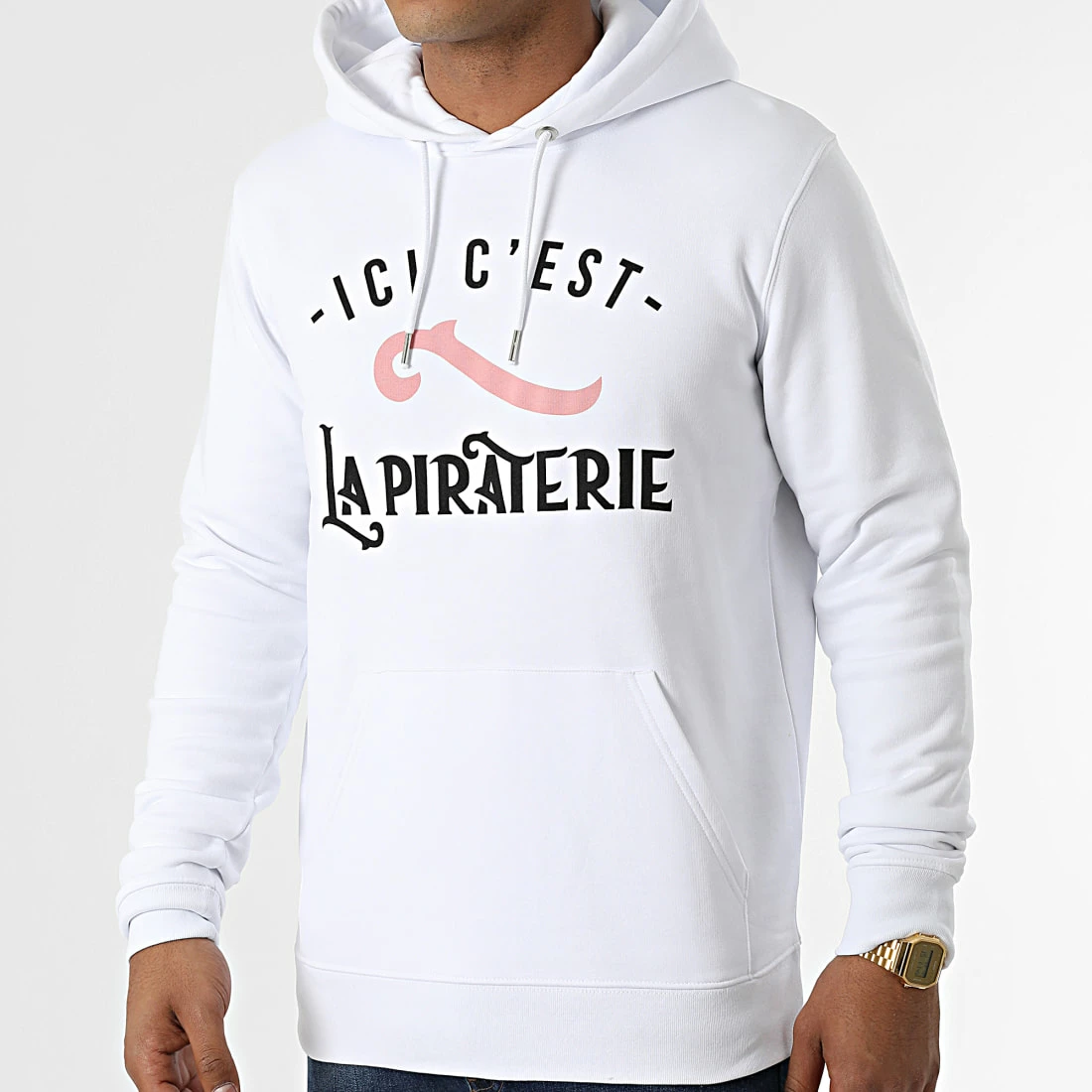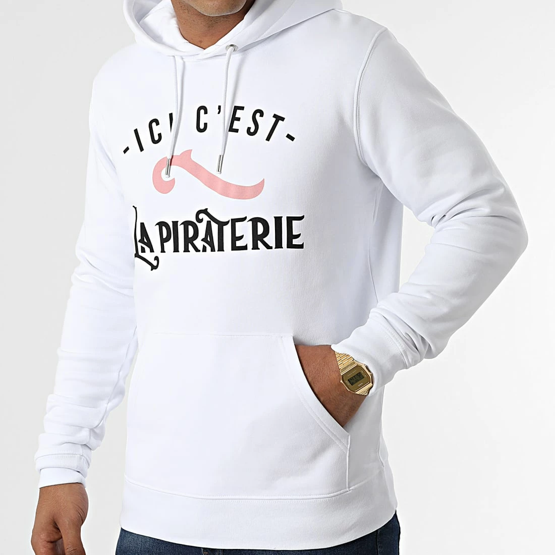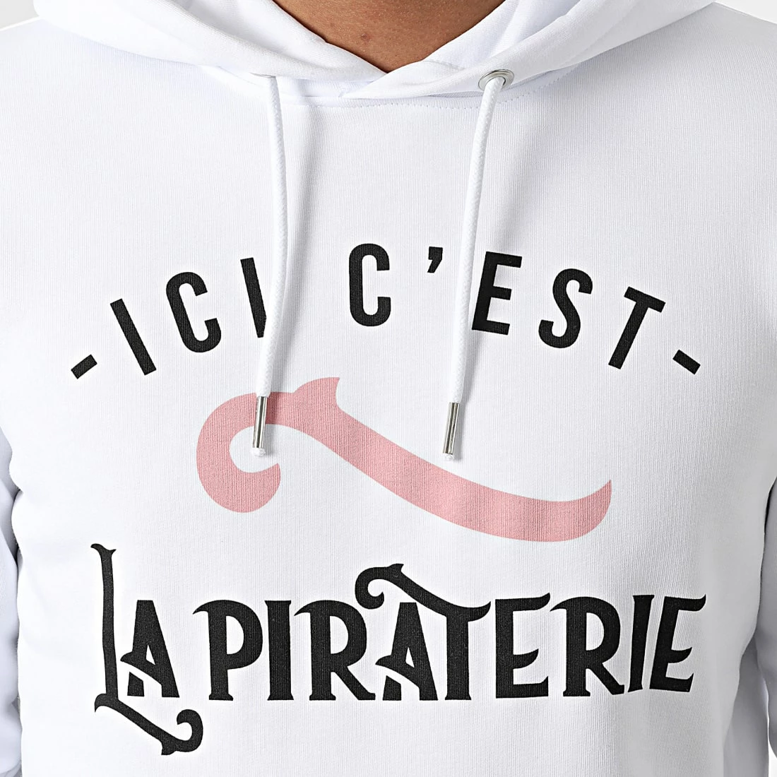 Sweat Capuche Ici C'est La Piraterie Blanc Noir