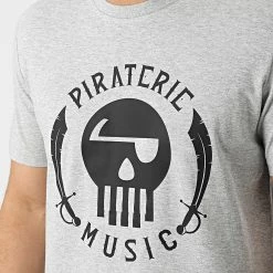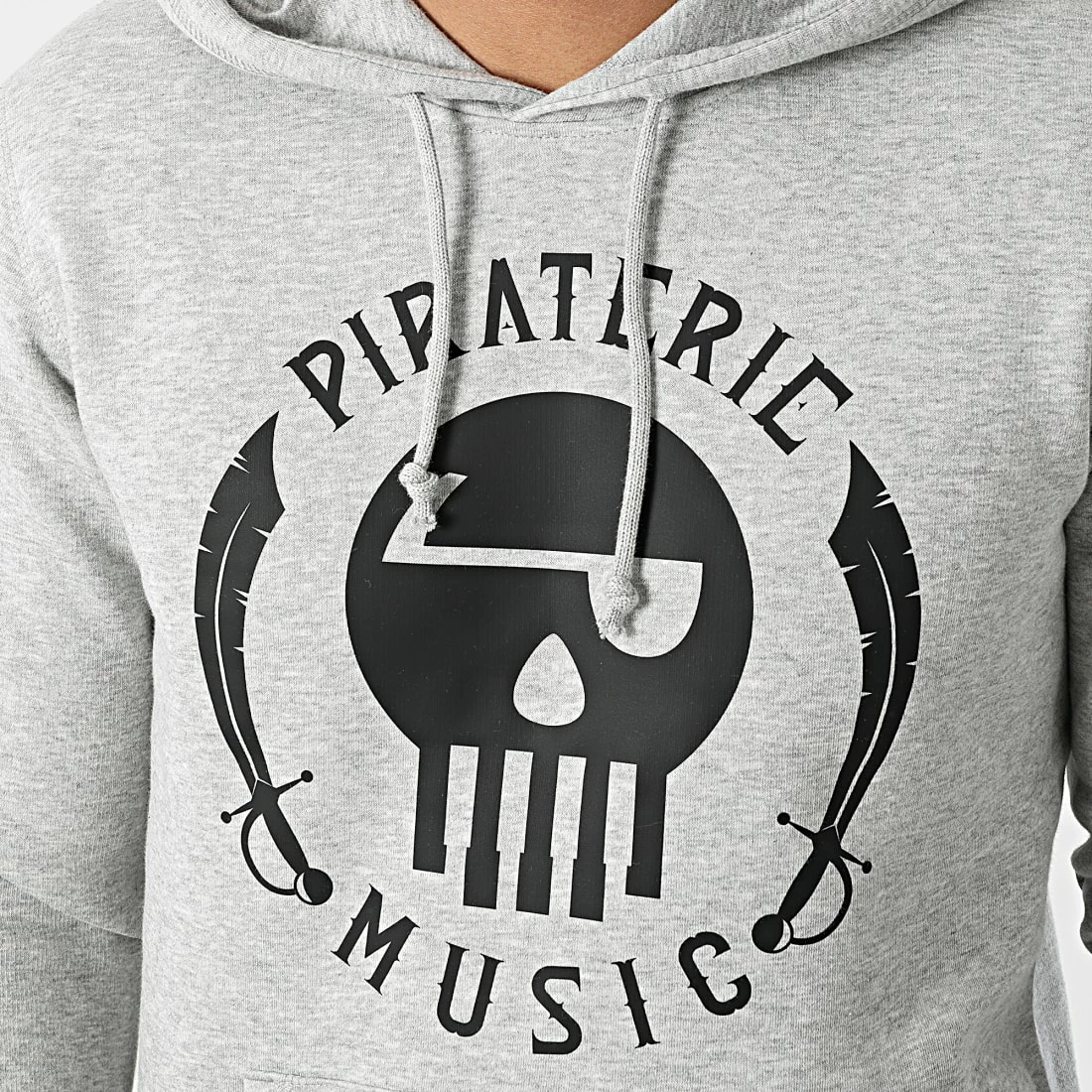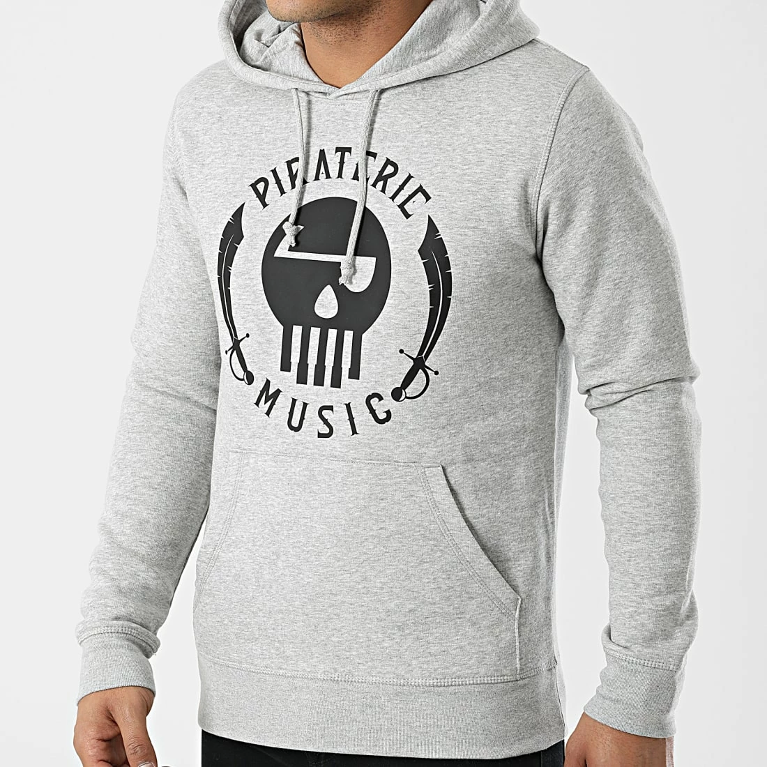 Sweat Capuche Logo Gris Chiné de Piraterie Music