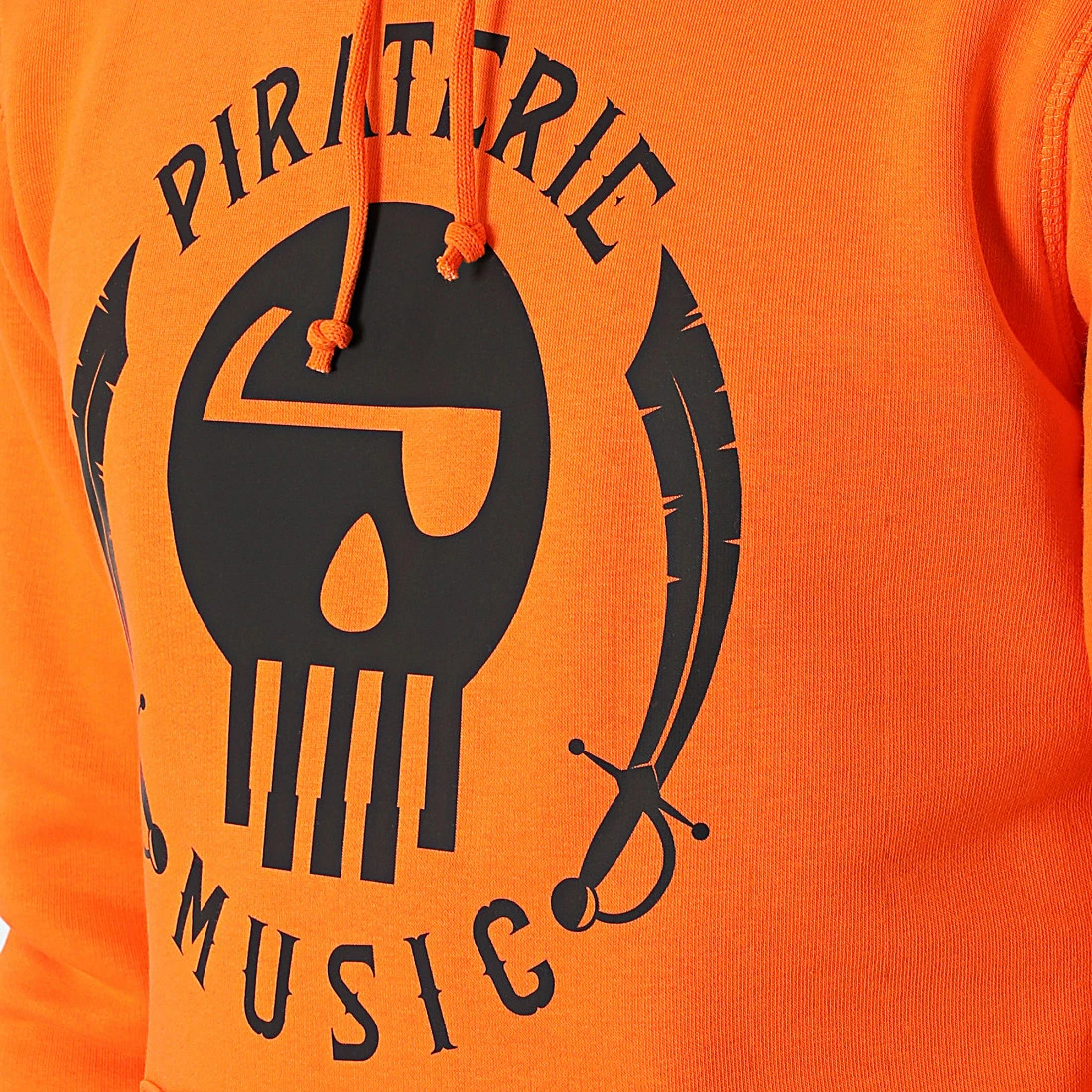 Sweat Capuche Logo Orange Noir de Piraterie Music