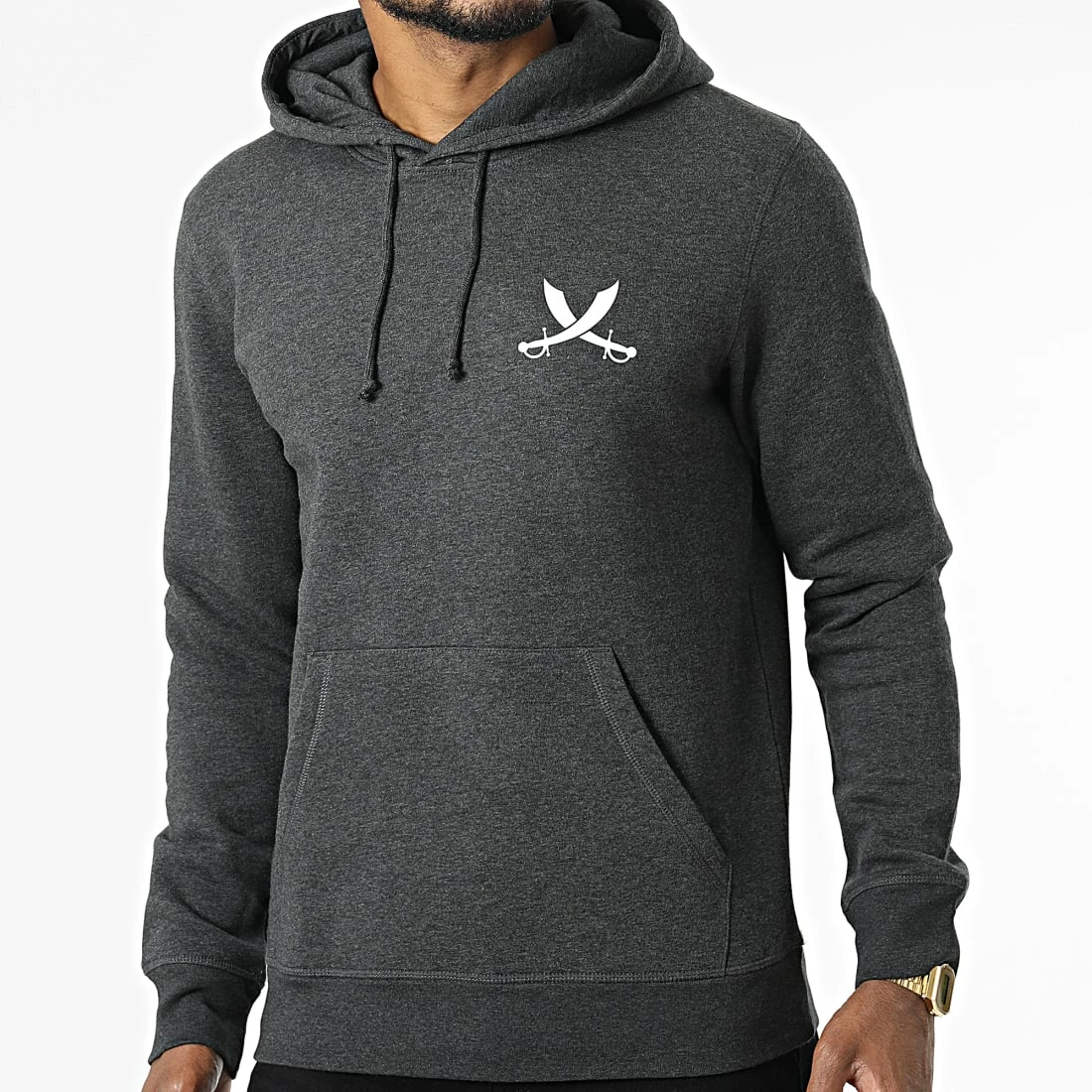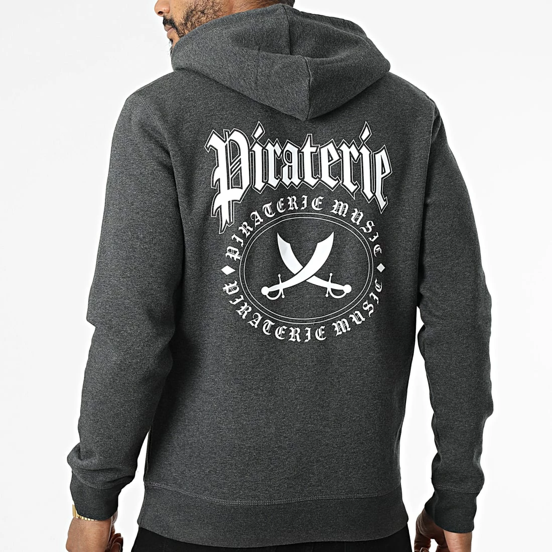 • Sweat capuche tendance imprimé visuel Piraterie Music à l’avant et au dos