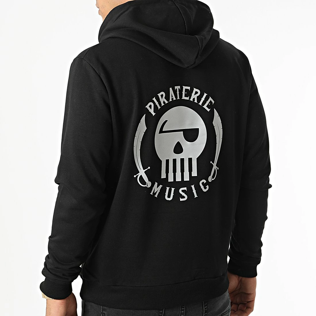 Sweat Capuche Réfléchissant Logo Chest And Back Noir de Piraterie Music