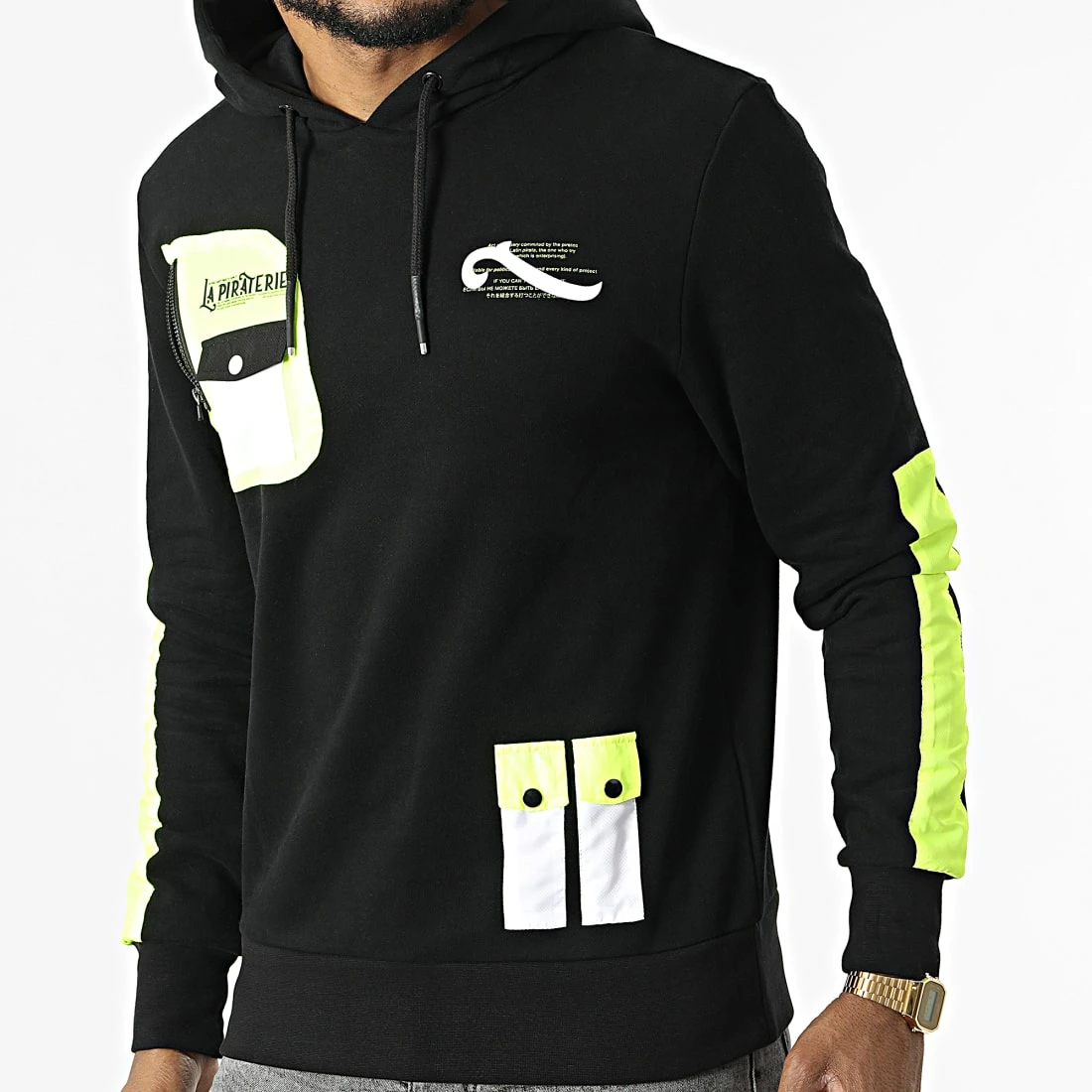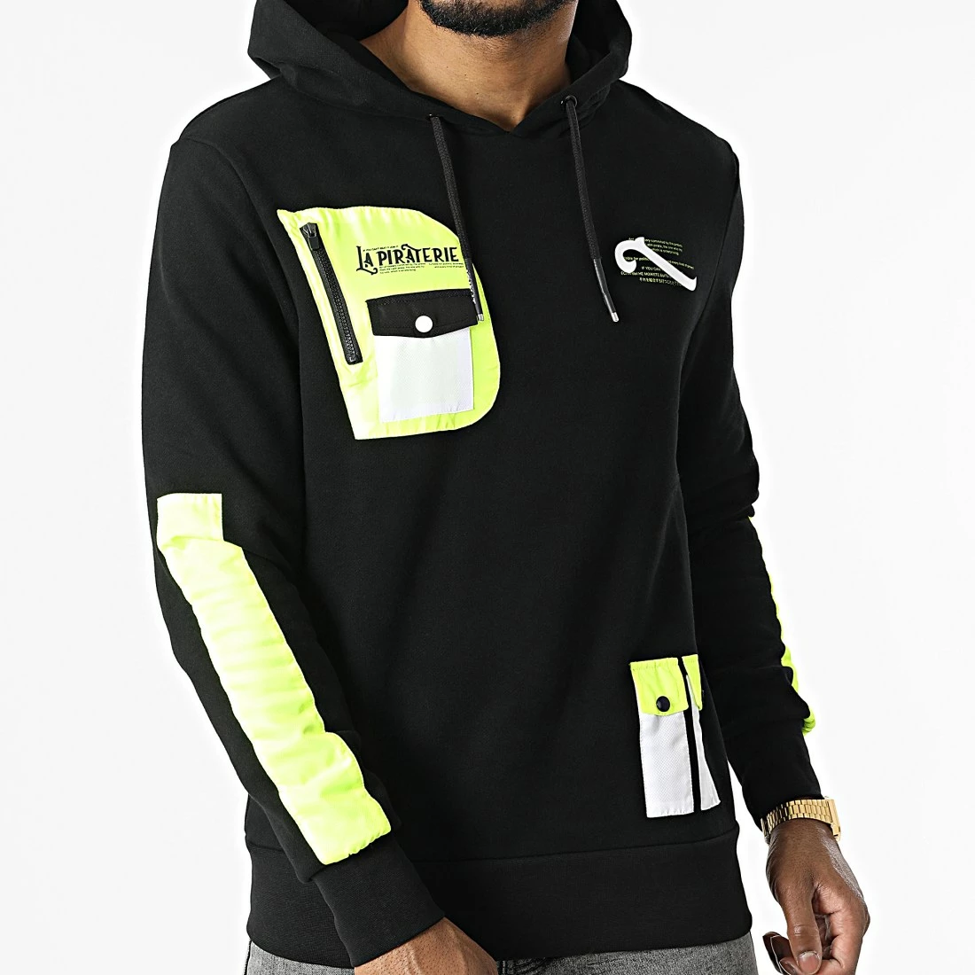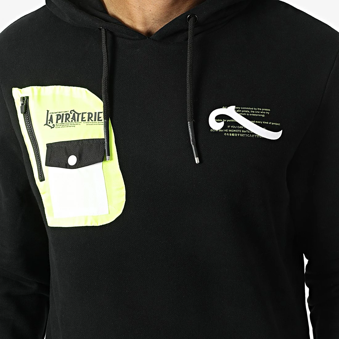 Sweat Capuche Sword 6849 Noir Jaune Fluo de La Piraterie
