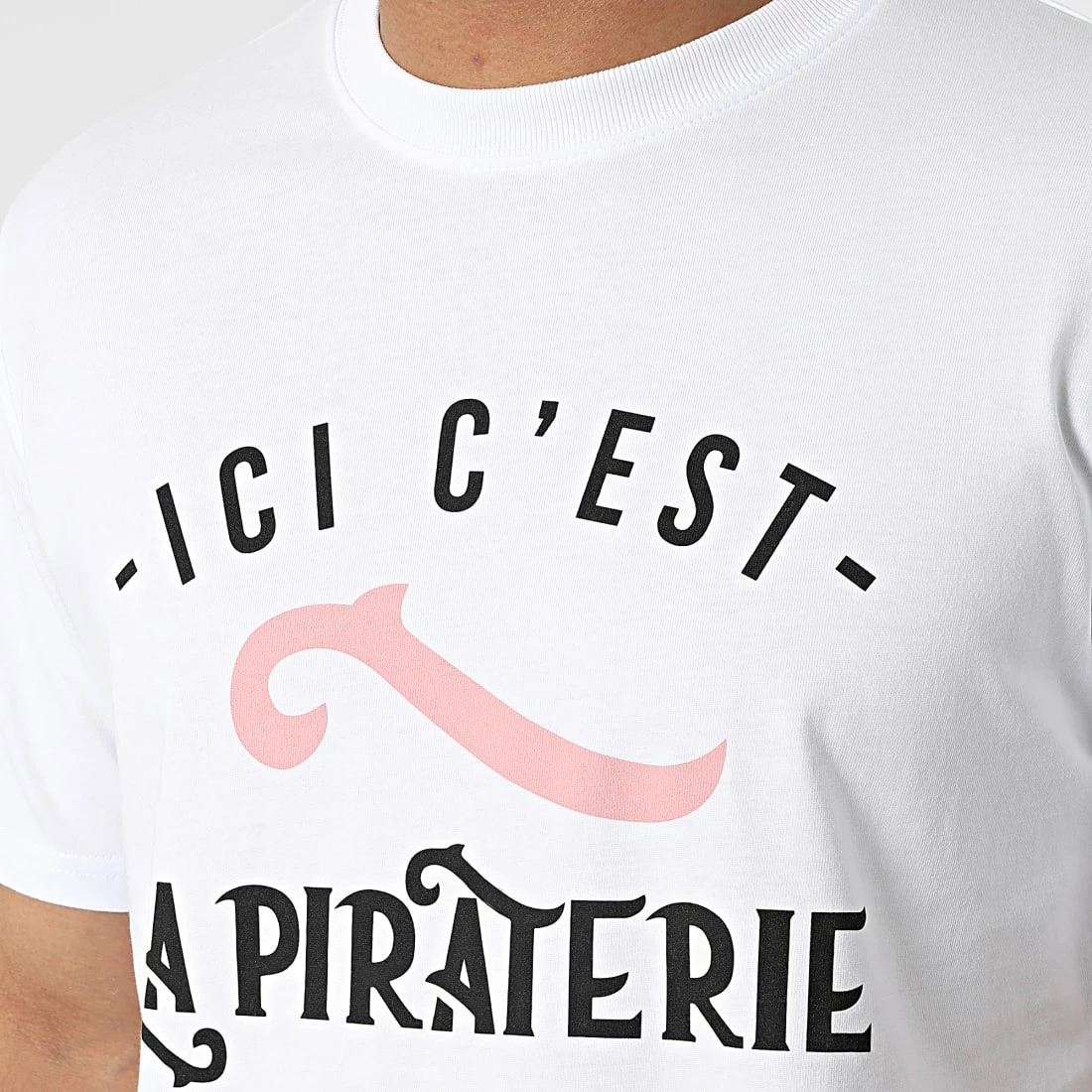 Tee Shirt Ici C'est La Piraterie Blanc Noir