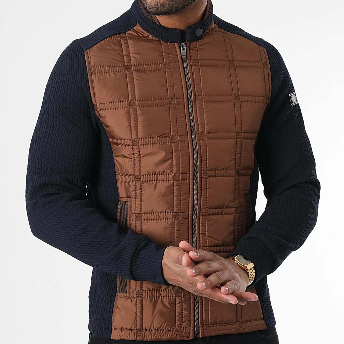 • Veste zippée bicolore tendance avec patch Black Needle brodé à l’épaule