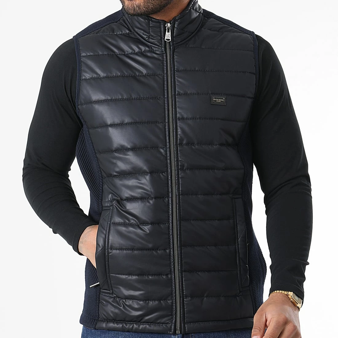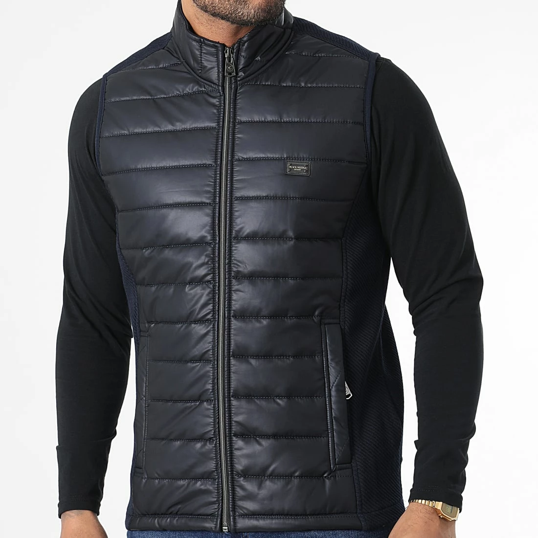 • Veste zippée sans manches bi-matière tendance avec patch Black Needle brodé