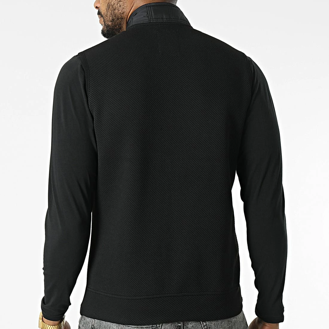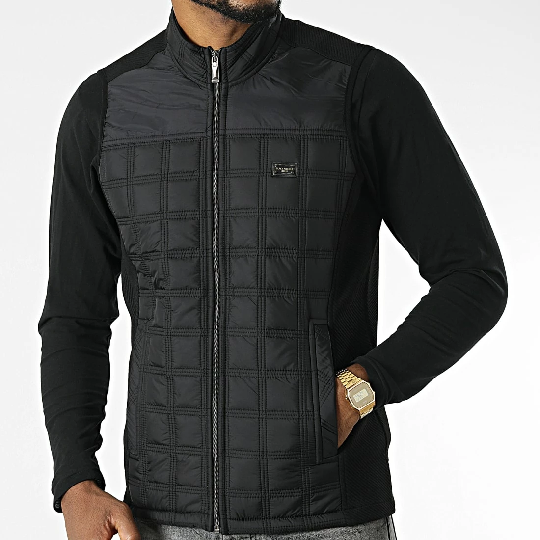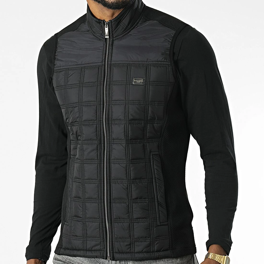 • Veste zippée sans manches bi-matière tendance avec patch Black Needle brodé