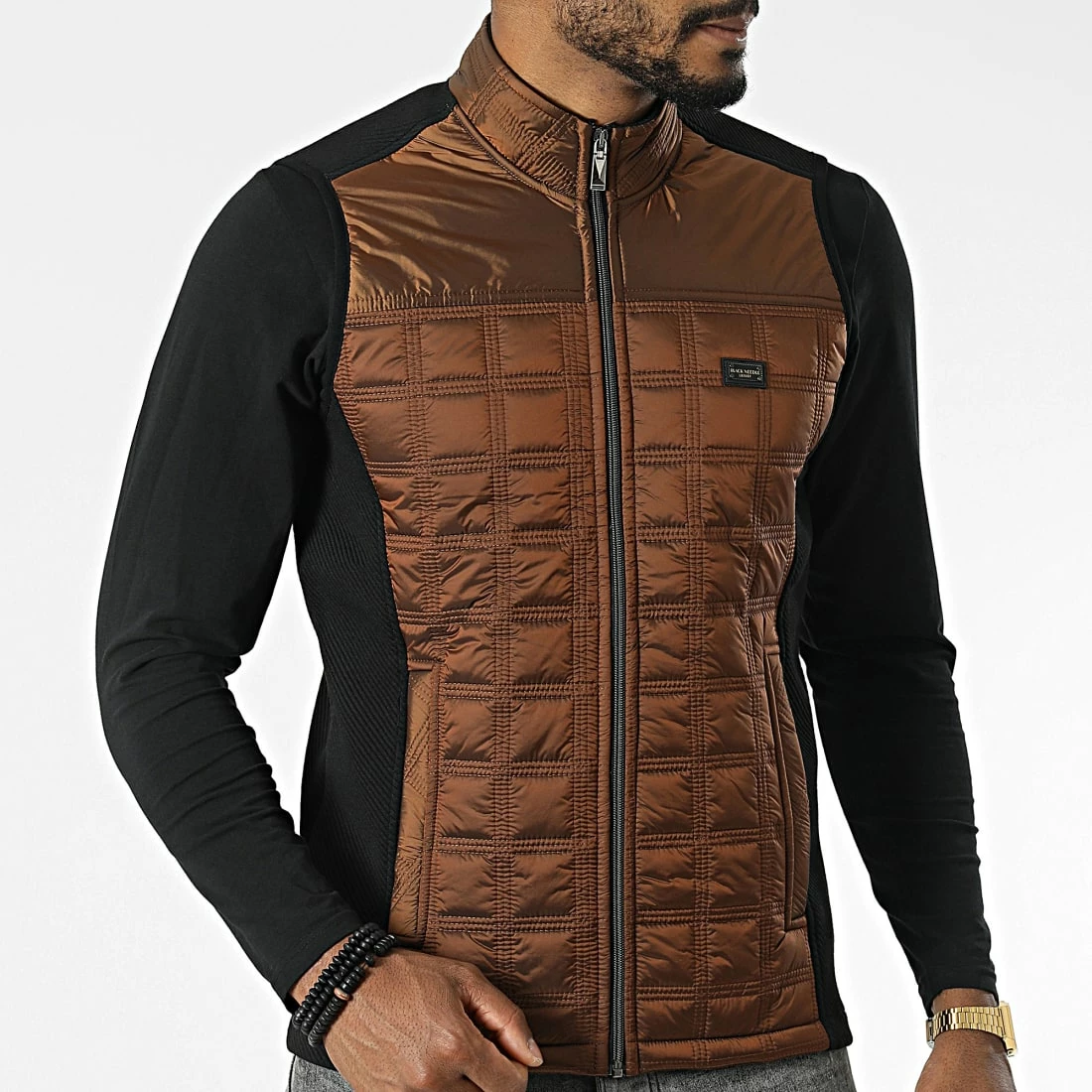 • Veste zippée sans manches bi-matière tendance avec patch Black Needle brodé